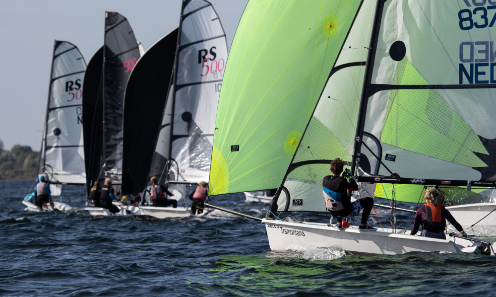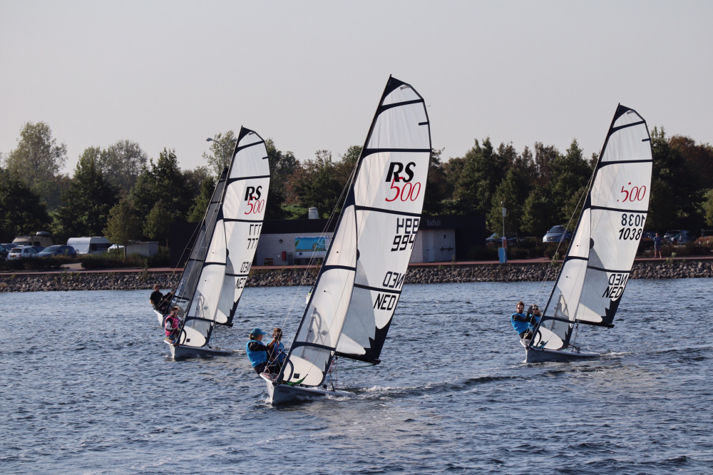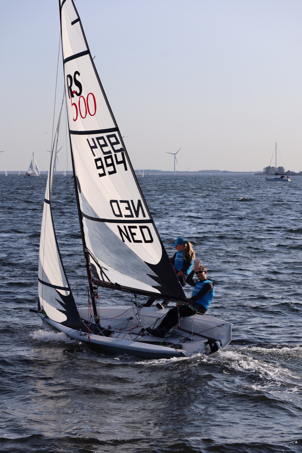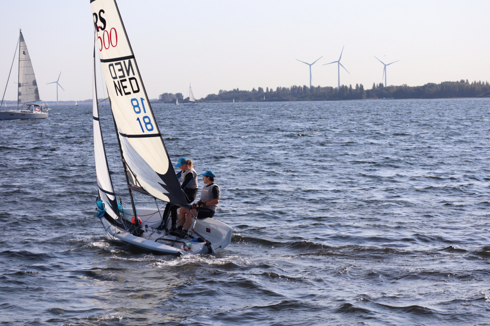 Bruinisse is een geliefde locatie van de RS500-klasse vanwege de grote kans op goede wind, en ook deze keer werden we niet teleurgesteld; Windkracht 3-4, stralende zon en een wedstrijdcomité dat er altijd een strakke baan weet in te leggen. Voordat we hiervan mochten gaan genieten moesten we echter eerst vertrekken uit de haven, dat is altijd een belevenis, maar de hoeveelheid vertrekstress is voor de een net een beetje meer dan voor de ander. Als je je neerhouder en complete gennaker strijksysteem nog moet vastknopen, of de onderdelen daarvoor moet zoeken/kopen wordt het vanzelf een spannende haastklus. Rennen, roepen en dan racen. De eerste race wordt in alle commotie gemist door Wampie en Ymke.