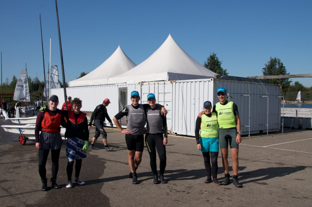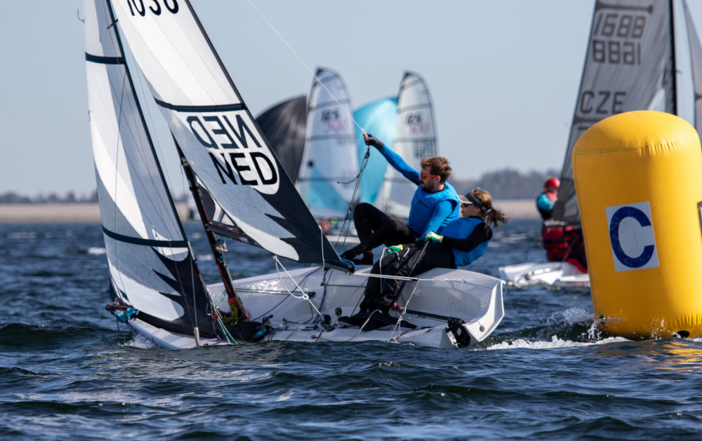 Eenmaal op het water werden er vol enthousiasme vier races gevaren. Met een team waarvan de stuurman zich net gekwalificeerd heeft voor de Olympische Spelen in Japan was de hoogste trede al bij voorbaat bezet. Anneke en Floris gaven het hem echter niet cadeau en met een vierde plaats als slechtste resultaat op dag 1 lieten ze zien waarom ze ooit Nederlands kampioen zijn geweest. Voor Fleur en Viktor betaalde de wekelijkse training op de Braassem zich uit door driemaal te eindigen in de top 10. Johan en Iris hadden daarentegen een beetje een pechdag met maar weinig bootsnelheid. Met een zwaardstrip als remtalie was een goede klassering helaas uitgesloten op zaterdag. De avond besteedden zij aan het repareren van hun boot om op de tweede wedstrijddag alsnog te kunnen pieken.