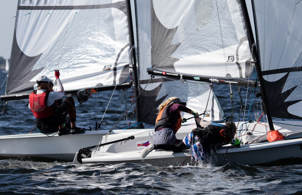 Vooral de tweede wedstrijd was een verraderlijke, want door een draaiwind in het eerste rak kon je de boot gigantisch missen als je aan de verkeerde kant van het veld zat. Deze tweede race van de dag begon overigens met een algehele terugroep, wat inhoudt dat er zó veel mensen vals gestart waren dat het startschip het allemaal ook niet meer wist. Oftewel iedereen terug en opnieuw beginnen!