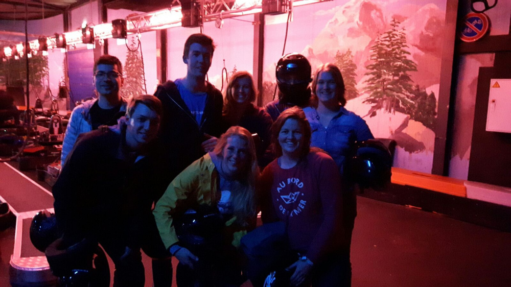 Er waren dusdanig veel ego's geschaad dat we het wel nog een keer moesten doen, dus we probeerden het indoor karten. Ditmaal scheurden we met elektrische auto's met snelheden van 60 km/u over de baan. De piepende banden klonken als muziek in de oren. Johan heeft hierbij de snelste tijd neergezet. Op de terugreis werden -nog steeds even fanatiek- alweer plannen gemaakt om binnenkort te gaan zeilen, want we blijven natuurlijk het RS-trainingsteam en niet het Kart-trainingsteam!