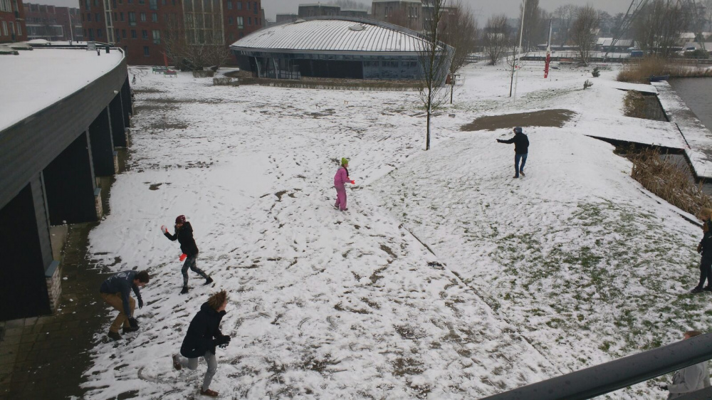 Rond de lunch was het tijd voor een korte onderbreking van het staren naar beeldschermen en rammen op toetsenborden en er werd een groot sneeuwballen gevecht gehouden met alle aanwezige leden. De sneeuwballen vlogen al vlug in het rond en menig man verloor al snel het gevoel in de vingers wat ze er niet van weerhield alsnog zo veel mogelijk mensen sneeuw te laten eten.