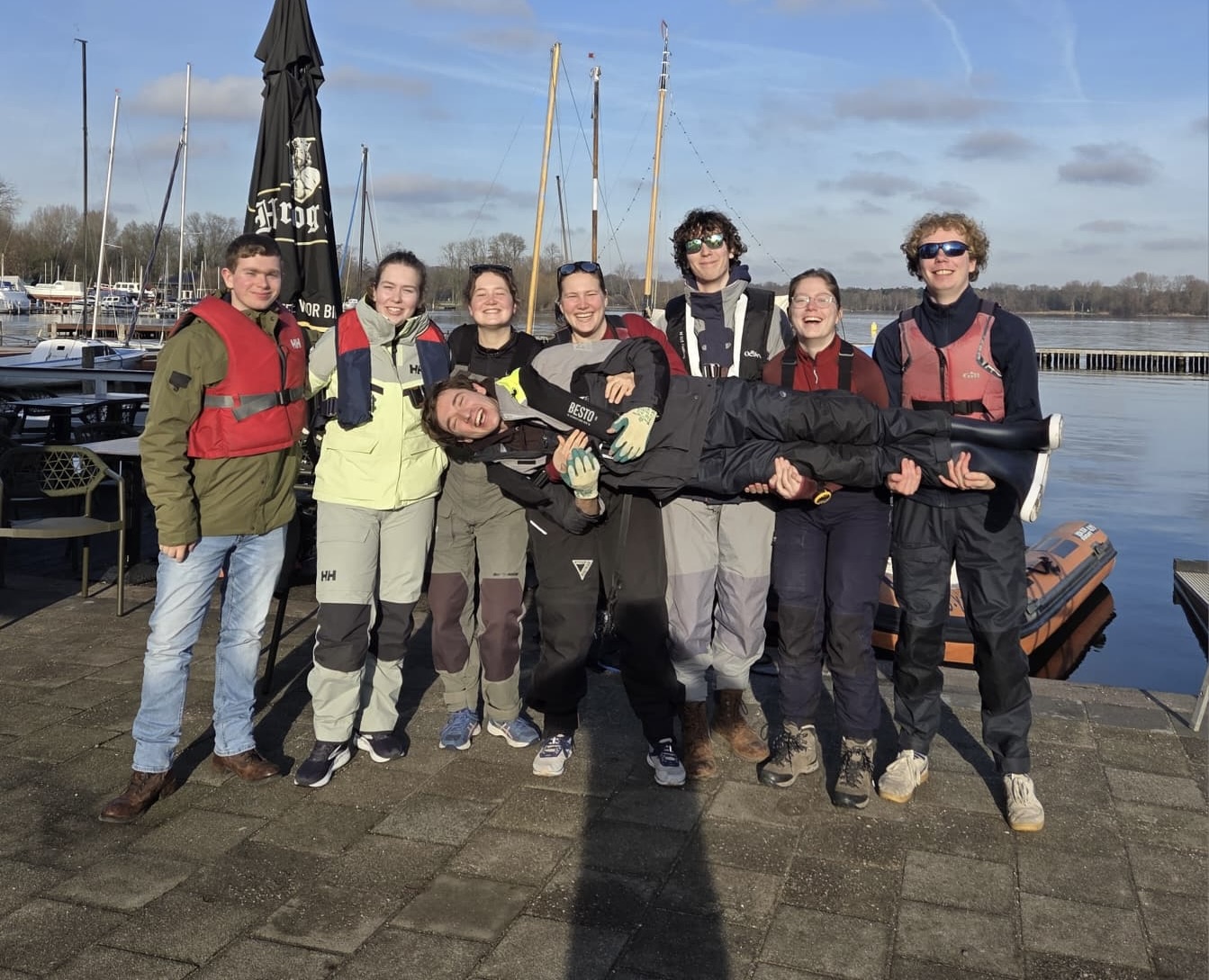 Het was een verassend warm weekend, dat naast de zonnigheid ook werd veroorzaakt door de wind die er al vrij snel mee ophield. Er vond nog een duel plaats tussen Broach en Aqua, maar tijdens het 4de duel konden de J22s alleen nog maar op hun plek dobberen, want er was geen beweging meer in te krijgen, waardoor de wedstrijd werd afgelast. Gelukkig heeft Lucas nog zijn geld eruit kunnen krijgen door een benoemingswaardige hoeveelheid tosti's te nuttigen, en hebben we ons opzich nog wel vermaakt door een skippybal die aan een betonnen gewicht vastzat tegen elkaars hoofd te schoppen. Hopelijk liggen er voor onze schuiters nog vele teamzeilavonturen in het vooruitzicht waar de wind het wel doet!