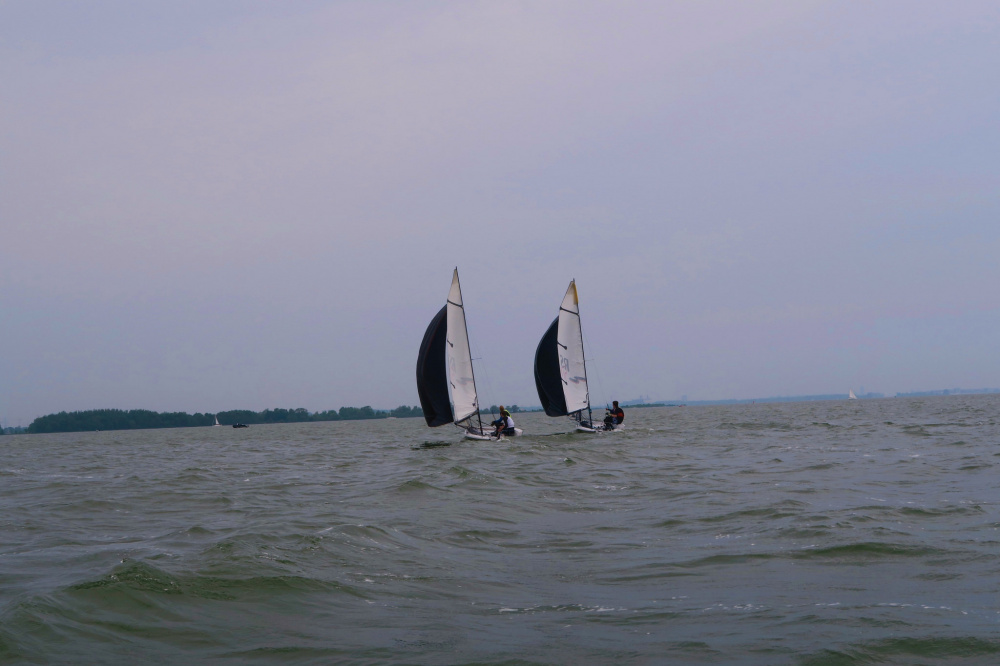 Na het ontbijt (helaas zonder koffie) op zaterdag begon de eerste zeilronde waar er op verschillend disciplines gezeild kon worden waaronder de J22, catamaran, laser, rs500, skûtsje, surf, platbodem en kajuitboot. Na een overheerlijke lunch (gelukkig met koffie) was er een tweede zeilronde of was er de mogelijkheid om mee te doen met de bierlympics; een reeks spelletjes waarbij bier een belangrijke factor was. Terwijl iedereen heerlijk op het water zat of van een biertje (of twee, drie, tien) genoot, waren de kokers druk bezig met de voorbereidingen van een verrukkelijke BBQ inclusief talloze heerlijke salades. Wouter, Jesper en Kevin waren onze grillmasters deze avond en hebben een lading heerlijke hamburgers, worstjes, kipkluifjes en vega hapjes voor ons gaar gebakken. Het eten smaakte zo goed dat er niet alleen een tweede ronde, maar zelfs ook derde en in een enkel geval vierde ronde gehaald werd. 'S avonds gingen we weer los met als eerste de cantus. Menig biertje werd weggedronken of weggestreept en we hebben allemaal onze keeltjes schor gezongen. Bij het 'roeien met de riemen die je hebt', wat schijnbaar een populaire bezigheid is van ons zusje (terwijl dit nummer afgespeeld wordt gaat iedereen ingedikt achter elkaar zitten roeien), zakte men door de tafel. Tot onze opluchting was niemand gewond en waren de eigenaren niet boos - ze lagen dubbel van het lachen. Een ander hoogtepunt was wel het biertje wat naakt weggedronken werd; voor elk kledingstuk dat deze twee mannen na het aftellen nog aan hadden moesten zij een biertje opdrinken. Een van hen ging helemaal naakt, waarvoor chapeau. De toon was direct gezet voor de rest van de avond en wederom werd er veel gedanst, gesjanst en geregeld; op de dansvloer, in de bosjes, in de tenten en zelfs op het vlonder.